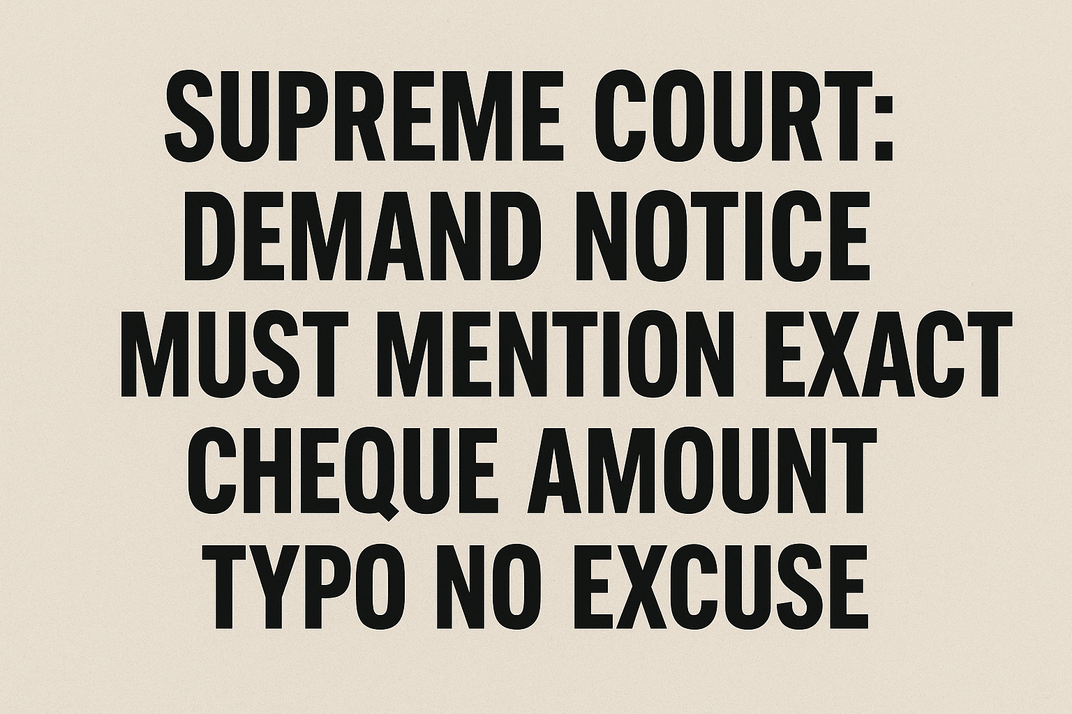 The Supreme Court in Kaveri Plastics v. Mahdoom Bawa Bahruden Noorul has delivered a significant ruling under Section 138 of the Negotiable Instruments Act, 1881. The Court held that if a statutory demand notice does not mention the exact cheque amount, the complaint under Section 138 is not maintainable. Importantly, even a typographical error in the cheque amount cannot be excused.